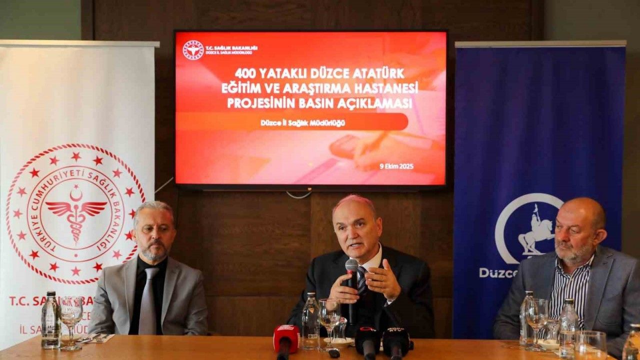 Düzce Belediye Başkanı Faruk Özlü, İl Sağlık Müdürü Dr. Yasin Yılmaz, AK Parti Düzce İl Yönetim Kurulu üyeleri Sinan Aydın, Yunus Emre Gülay ve ihaleyi alan firmanın sahibi Mimar Evren Başbuğ basın mensuplarıyla bir araya geldi. Basın toplantısında Aziziye Mahallesi’ndeki Atatürk Devlet Hastanesi yanında bulunan 37 dönüm arazi üzerine inşa edilmesi planlanan 400 yataklı Eğitim ve Araştırma Hastanesi’nin projesinin detayları kamuoyu ile paylaşıldı.