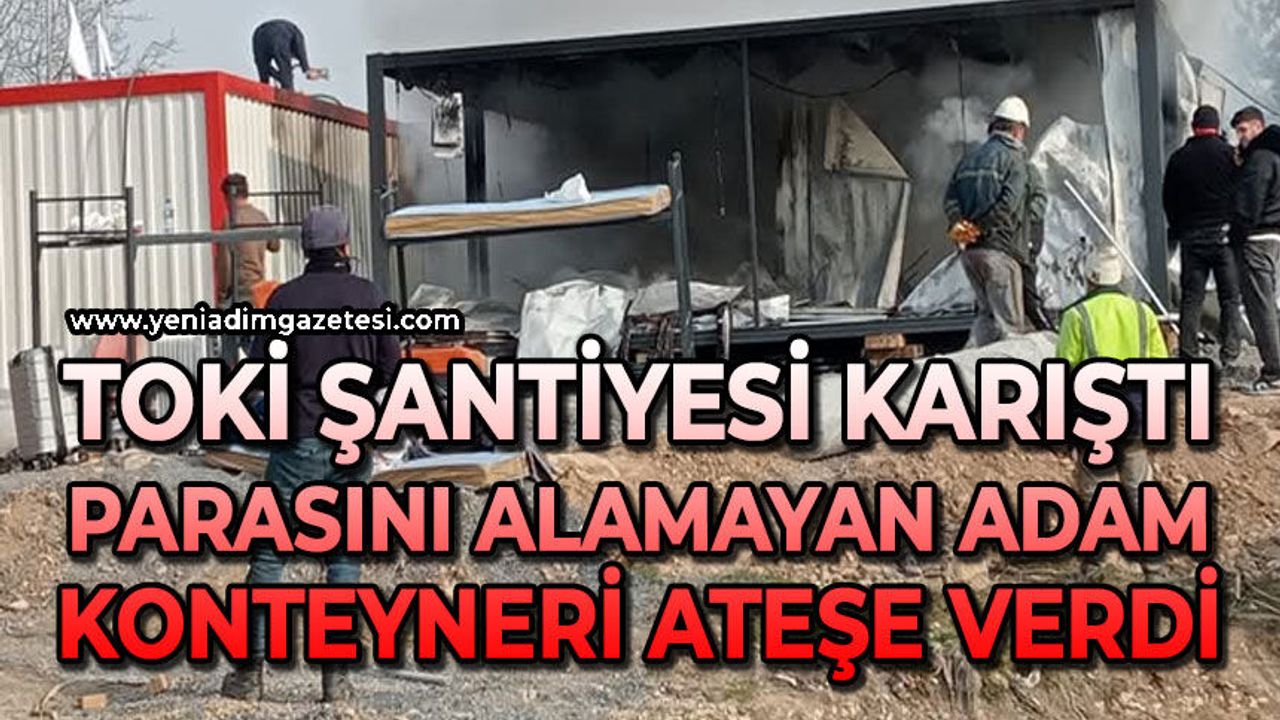 Edinilen bilgilere göre olay, Alaplı ilçesinde meydana geldi. İddiaya göre Alaplı TOKİ şantiyesinde yemek firmasına bir kişi konteyner sattı. Konteynerin parasını alamayan kişi sattığı konteyneri ateşe verdi.