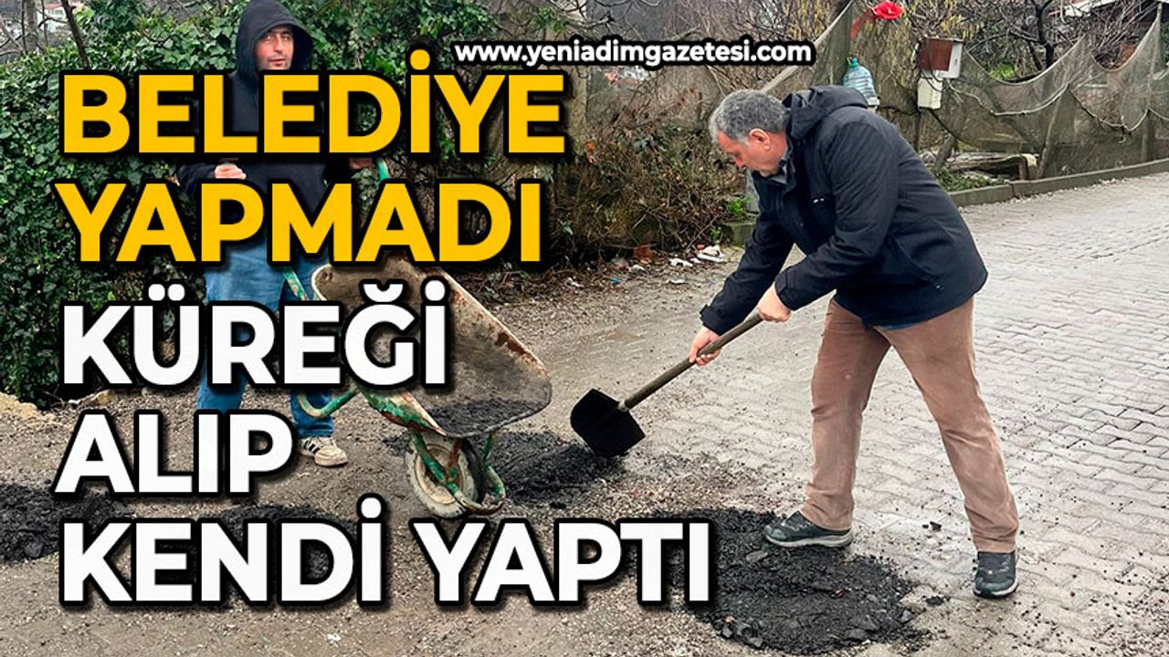 Eski kahvehanenin önündeki yol ayrımında meydana gelen çökmeler ve bozukluklar uzun süredir çözüm beklerken, mahalleli durıma el koydu. Belediye ekiplerinin bölgeye müdahale etmediğini belirten vatandaşlar , elinde küreğiyle sokağa inerek yolu düzeltmeye çalıştı.