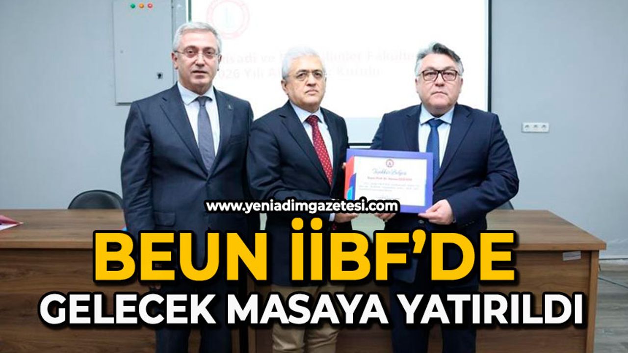 İktisadi ve İdari Bilimler Fakültesi 2025-2026 Akademik Kurul Toplantısı, BEUN Rektörü Prof. Dr. İsmail Hakkı Özölçer'in ulusal ve uluslararası indekslerde yayımlanan bilimsel çalışmalarıyla öne çıkan akademisyenlere teşekkür belgelerini takdim etmesi ve toplu hatıra fotoğrafı çekilmesiyle sona erdi.
