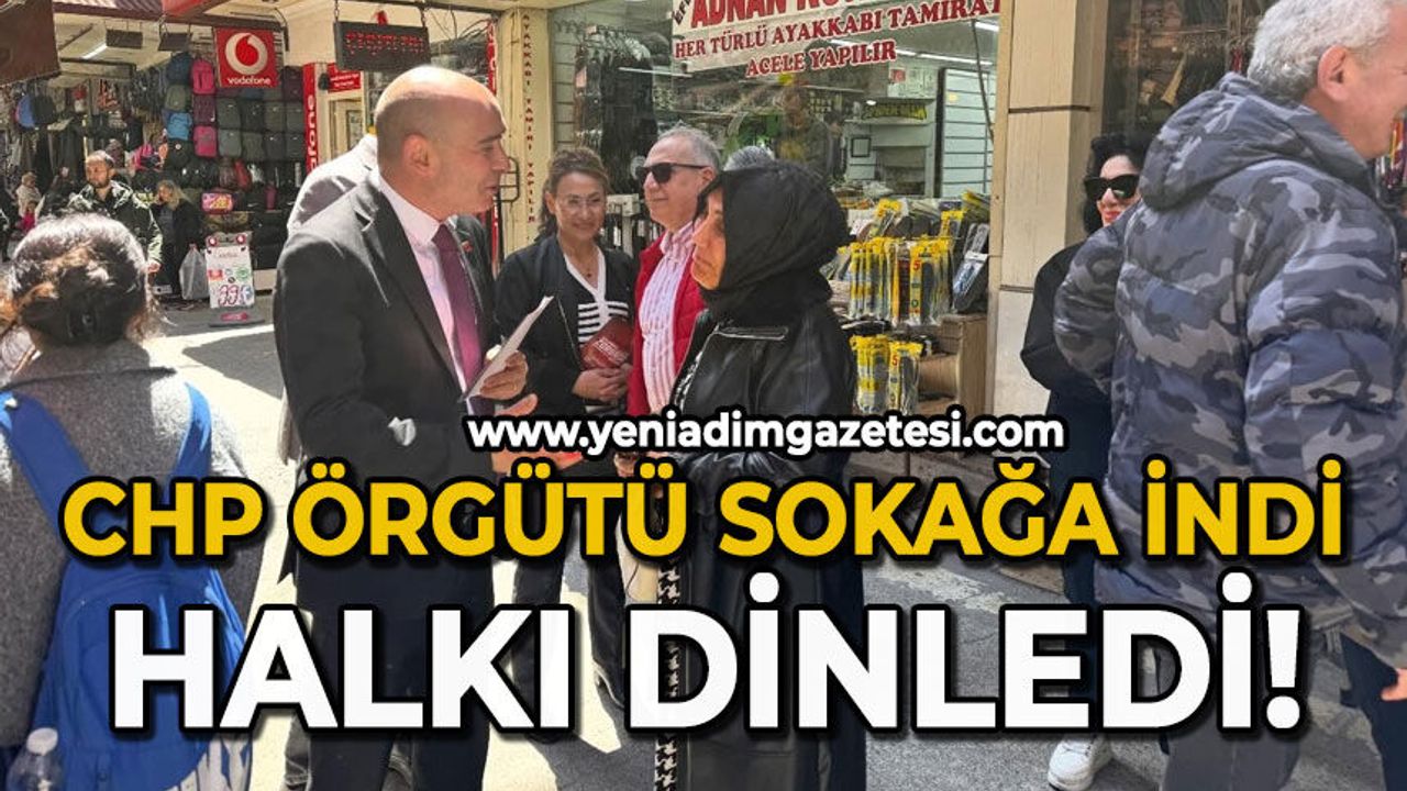 CHP İl Başkanı Devrim Dural,İlçe başkanları ve parti yöneticileri ile Zonguldak caddelerinde vatandaşlarla bir araya geldi.Esnafların ve halkın derdini dinleyen CHP'liler iktidara geldikleri taktirde sorunları çözeceklerini vurguladılar.Dural açıklamasında,"artan hayat pahalılığı, düşen alım gücü ve her geçen gün ağırlaşan yaşam koşullarının toplumun her kesimini zorladığını bir kez daha gördük.“Katlanmak Zorunda Değilsiniz” sloganıyla başlattığımız üye kampanyamız kapsamında broşürlerimizi vatandaşlarımıza ulaştırarak çözümün dayanışmada ve birlikte mücadelede olduğunu anlattık.Daha güçlü bir demokrasi, daha adil bir düzen ve halktan yana bir yönetim anlayışı için tüm yurttaşlarımızı Cumhuriyet Halk Partisi çatısı altında omuz omuza mücadele etmeye davet ediyoruz."dedi.