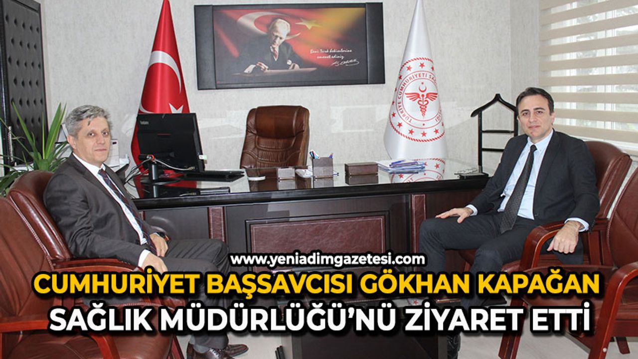 Zonguldak Cumhuriyet Başsavcısı Gökhan Kapağan, geçtiğimiz aylar içersinde yeni görevine başlayan İl Sağlık Müdürü Uzm. Dr. Mustafa Özkan Gün’ü makamında ziyaret ederek çalışmalarında başarılar diledi. Başsavcı Gökhan Kapağan’ın İl Sağlık Müdürüne yapmış olduğu ziyarette, sağlık hizmetlerinin durumu ve sağlık alanında çalışmalar hakkında bilgi alış verişinde bulunarak Zonguldak’ta sağlık alanında başarılı çalışmalar temennisinde bulundu.