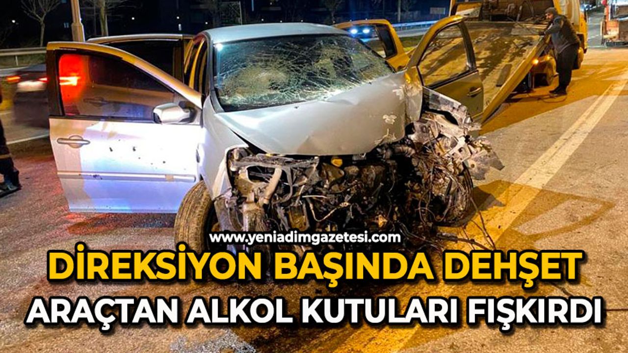 Kullanılamaz hale gelen otomobilin içinde bulunan alkol kutuları dikkat çekti.