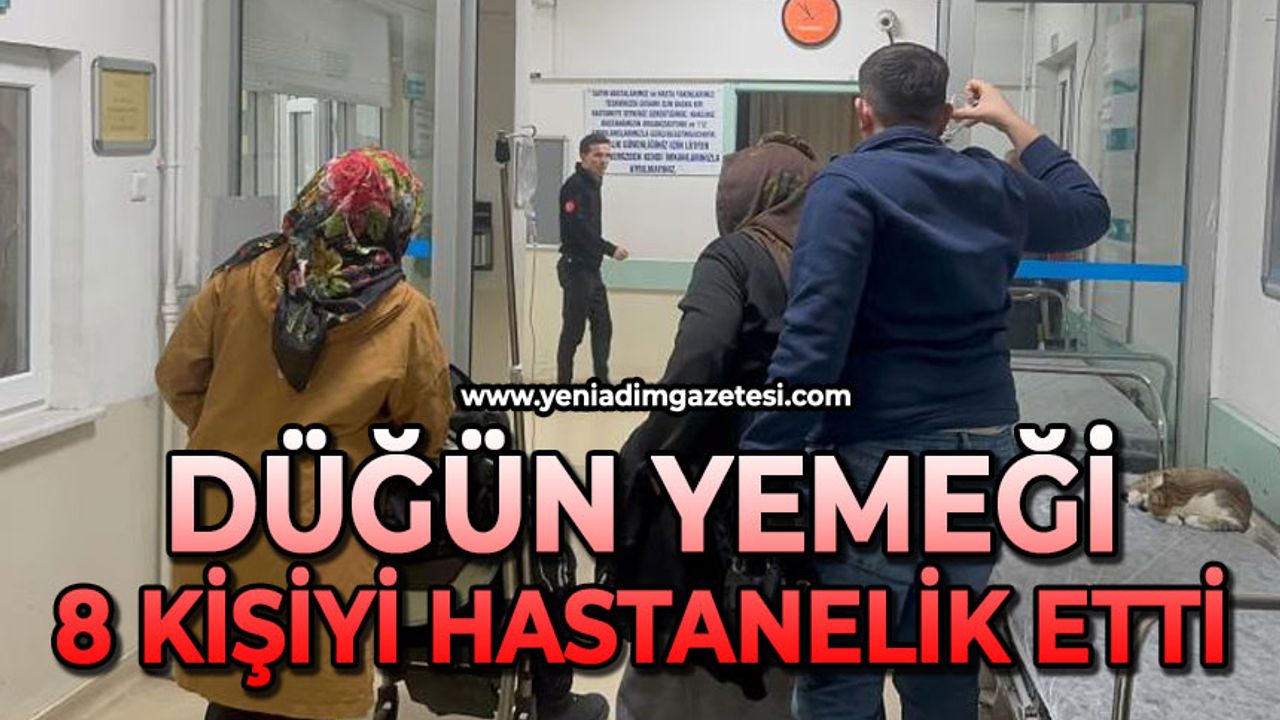 Edinilen bilgiye göre, öğlen düzenlenen bir düğünde dağıtılan tavuk döner yiyen davetliler, bir süre sonra rahatsızlandı. Baş dönmesi, kusma şikayetiyle 8 kişi, Alaplı Devlet Hastanesi’ne başvurdu. 8 kişinin yapılan muayenesinde yedikleri yemekten zehirlendikleri belirlendi. Zehirlenen vatandaşlardan bir kısmı yapılan müdahalenin ardından taburcu edildi.