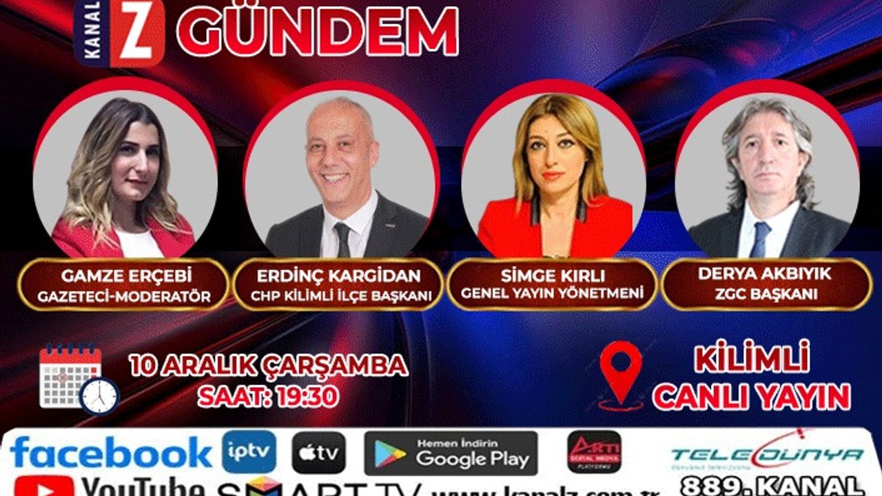 Kilimli'den yapılacak canlı yayında ErdinçKargidan, Gazeteci Gamze Erçebi'nin yanı sıra Kanal Z Genel Yayın Yönetmeni Simge Kırlı ve Zonguldak Gazeteciler Cemiyeti Başkanı Derya Akbıyık'ın sorularını yanıtlayacak.
