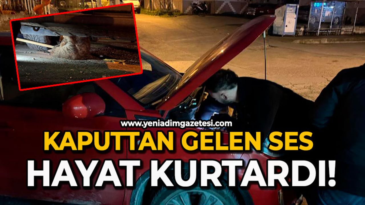 Olay, Zonguldak'ın Alaplı ilçesi Yeni Siteler Mahallesinde meydana geldi. Araç sahibinin otomobiline binip iş yerinden ayrıldığı sırada aracın kaputundan kedi sesi geldiğini fark etti. Hemen aracını kenara çekip kaputu inceleyen otomobil sahibi, bir kedinin kayışa sıkıştığını fark etti.