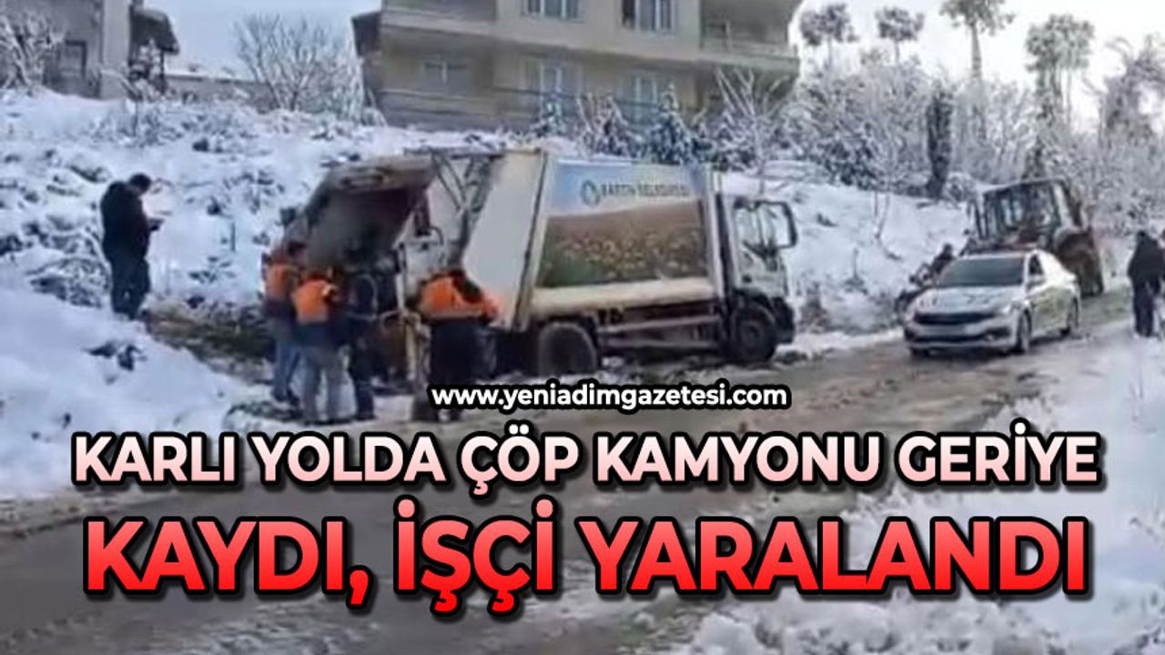 Bartın'da yoğun kar yağışı ve buzlanmaya karşı yapılan uyarıların sürdüğü sabah saatlerinde, Ağdacı Mahallesi'nde belediyeye ait çöp kamyonu kontrolden çıkarak geriye doğru kaydı. Kamyonun arkasındaki belediye işçisi, kayarak toprak zemine çarpan araç ile toprak zemin arasında sıkıştı.