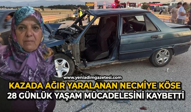 Kazada ağır yaralanan Necmiye Köse 28 günlük yaşam mücadelesini kaybetti