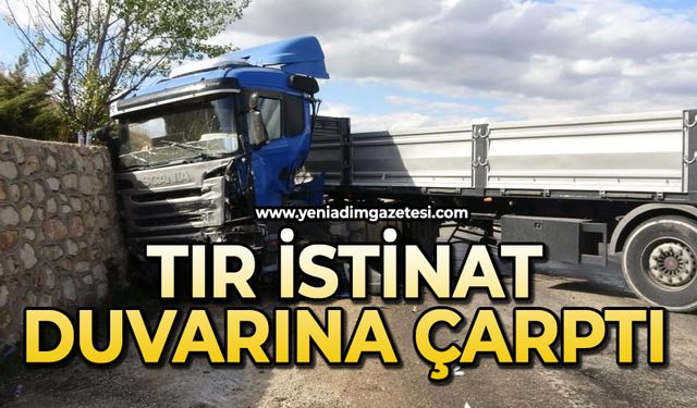 Tır istinat duvarına çarptı