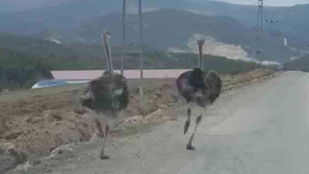 Olay, merkeze bağlı Üçbaş köyünde meydana geldi. Otomobili ile seyir halinde olan sürücü yoldaki deve kuşlarını fark etti. Deve kuşları aracı gördükten sonra koşmaya başlarken o anlar sürücü tarafından cep telefonuyla görüntülendi. Bir süre aracın önünde koşan deve kuşları yoldan ayrılarak gözden kayboldu.