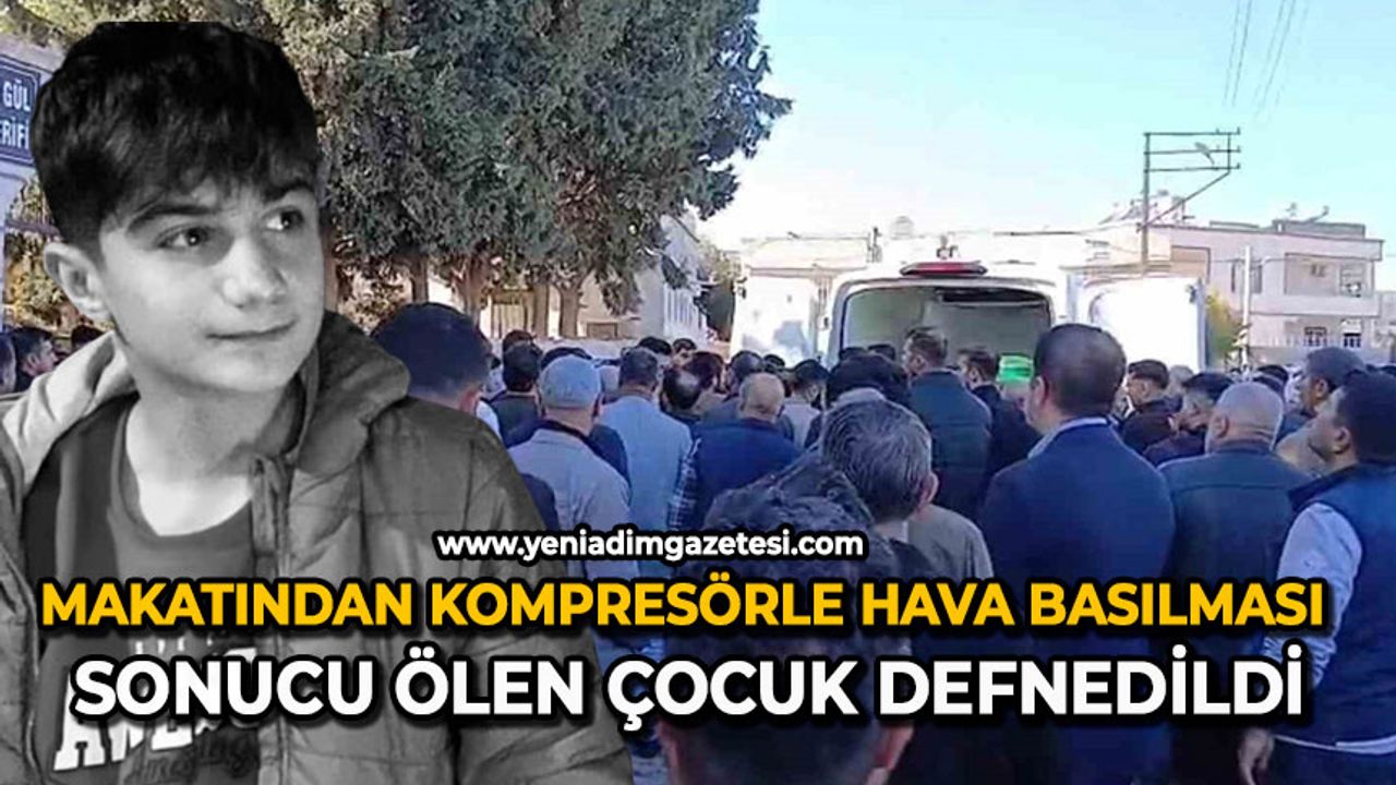 Olay, 14 Kasım’da Şanlıurfa’nın Bozova ilçesindeki bir marangoz atölyesinde yaşandı. İddiaya göre, 20 yaşlarında olan Habip A., aynı iş yerinde çırak olarak çalışan 15 yaşındaki Muhammed Kendirci’nin makatına kompresörle hava bastı. İç organları zarar gören çocuk, tedavi gördüğü Harran Üniversitesi Tıp Fakültesi Hastanesi’nde sabah saatlerinde hayatını kaybetti. Çocuğun cesedi, Şanlıurfa Adli Tıp Kurumu Morgundaki otopsi işlemlerinin ardından Bozova ilçesine götürüldü. Muhammed Kendirci’nin cenazesi, öğle vakti Güllü Gül Camii’ndeki cenaze namazının ardından defnedildi.
