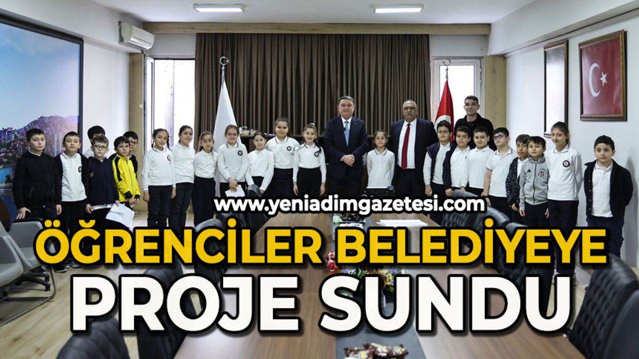 Karaelmas İlkokulu 4/B sınıfı öğrencileri, su ve enerji tasarrufuna dikkat çekmek amacıyla hazırladıkları projeyi belediye Başkanı Tahsin Erdem’e sundu.