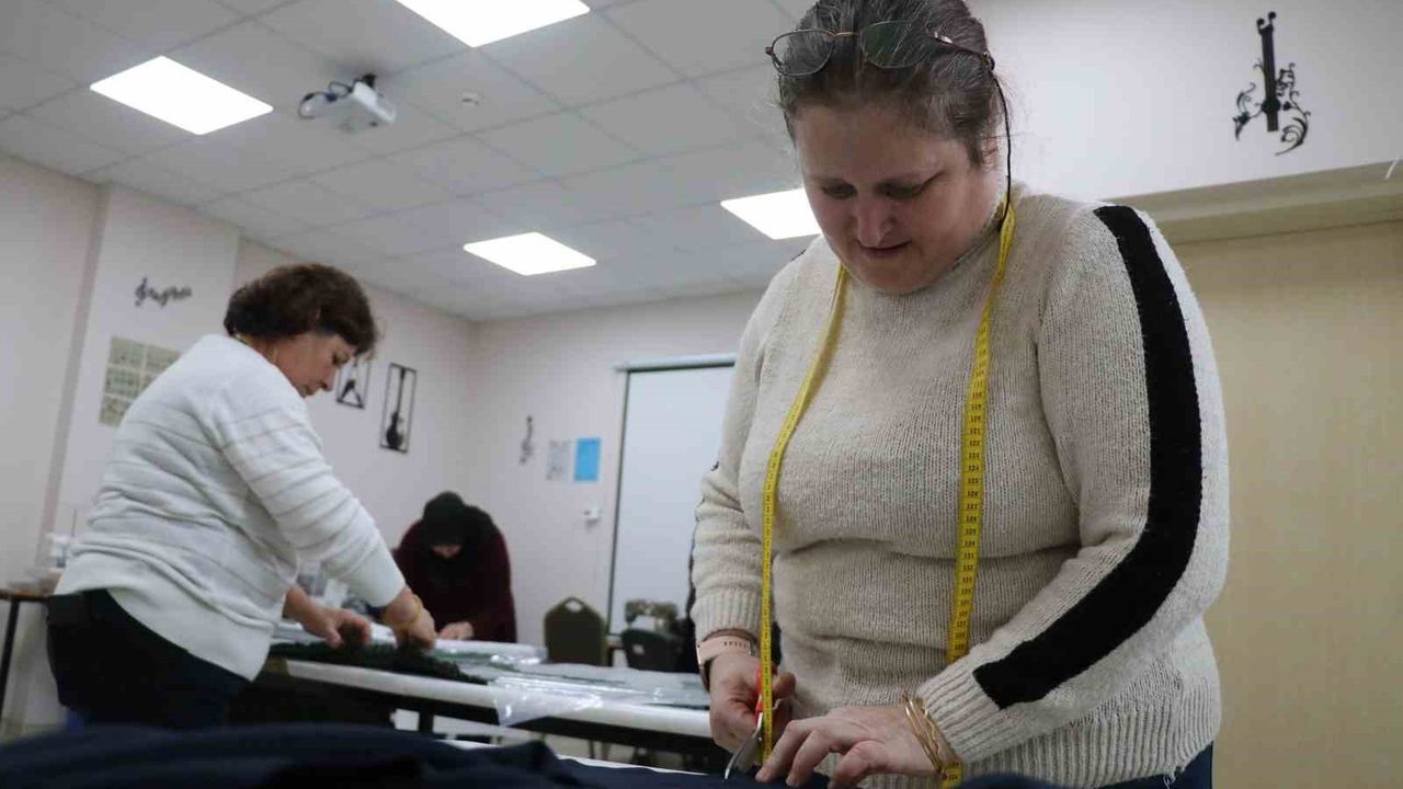 Çocukları için de kıyafet diktiklerini söyleyen Saniye Acet, 'Oğlum son sınıfta otizm öğrencisi. Sabah saat 09.00'da buraya geliyoruz. Akşam 15.00'a kadar çocuklarımızı bekliyoruz. Bu arada da kendimize özel böyle dikiş kursu açıldı. Burada da zamanımızı bu şekilde değerlendirmeye çalışıyoruz. Bu kurs açılmadan önce ne yapıyorduk? Aşağıda kendimize göre işte el işleri yine böyle etkinlikler kendi kendimize bir şeyler yapıyorduk ama oturuyorduk. Çocuklarımızla vakit geçiriyorduk. Burası faydalı oldu tabii ki. Biz Bizim için de çok faydalı oldu. En azından vaktimizi değerlendiriyoruz. Bir şeyleri öğreniyoruz. Mesela kendi diktiklerimizi veya çocuklarımızın üstüne giydiklerini kendimiz dikiyoruz' dedi.