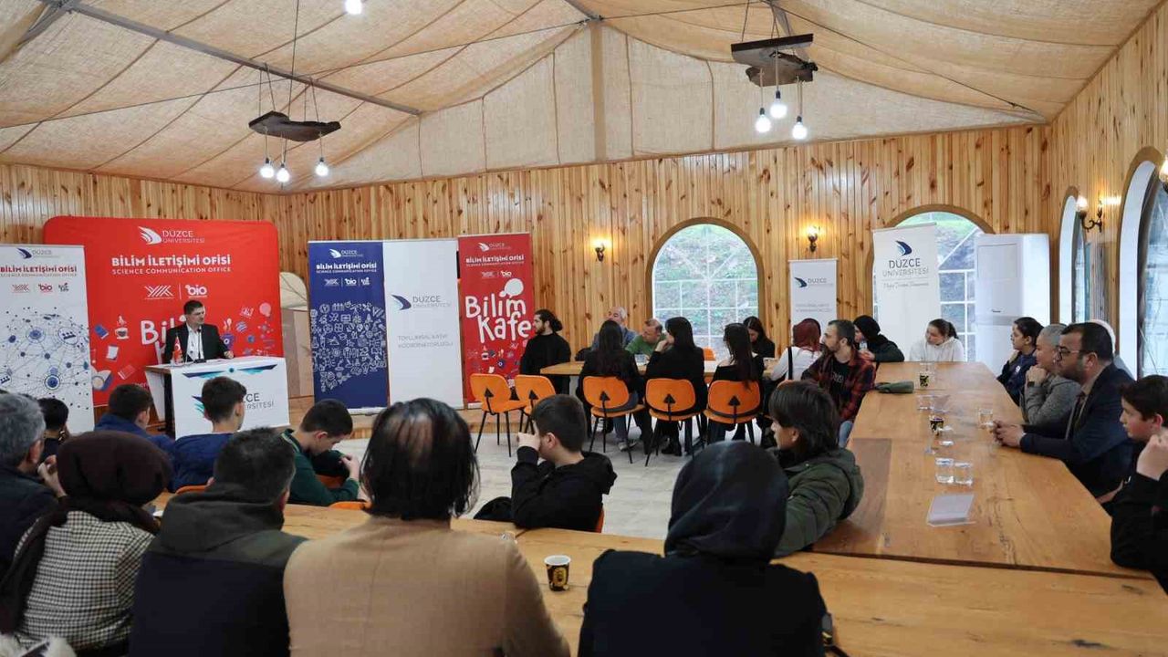 Düzce Üniversitesi Bilim İletişimi Ofisi ve Toplumsal Katkı Koordinatörlüğü iş birliğiyle düzenlenen ve bilimsel bilgiyi toplumla buluşturan Bilim Kafe etkinliğinde, 'Oruç: Bilimsel ve Manevi Yansımaları' konusu konuşuldu. Konuralp Antik Tiyatro Çadırında gerçekleştirilen etkinliğe; Düzce Üniversitesi Rektör Yardımcısı Prof. Dr. Emrah Evren Kara, Genel Sekreter Yardımcısı ve Kurumsal İletişim Koordinatörü Öğr. Gör. Duygu Özdemir Cömert, Toplumsal Katkı Koordinatörü Doç. Dr. Hande Bulut, Konuralp İmam Hatip Ortaokulu Müdürü Fuat Aydoğdu ve öğrenciler ile Düzce Üniversitesi akademik ve idari personeli katıldı.