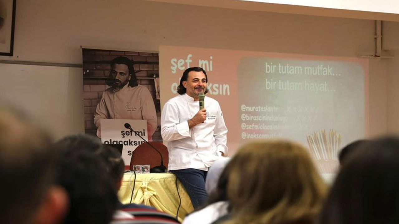 Konuşmasına bakış açınızı değiştirin çağrısıyla başlayan Şef Murat Aslan, mesleki başarının sadece yemek yapmaktan değil, ürünü ve kültürü her yönüyle tanımaktan geçtiğini vurguladı. Öğrencilerle deneyimlerini paylaşan Şef Aslan, mutfaktaki basit bir ürün dahil her türlü ürünün, yağ oranından yöresine, fiyatından özelliğine kadar çok fazla farklı bilgi barındırdığını ve gerçek bir şefin bu detaylara hakim olması gerektiğini anlattı. Kendi kariyer yolculuğundan örnekler veren Aslan, pilotluk hayalinden Mengen'deki zorlu eğitim yıllarına, mutfak hiyerarşisindeki saygı kültüründen profesyonel mutfak disiplinine kadar geniş bir perspektif sundu.