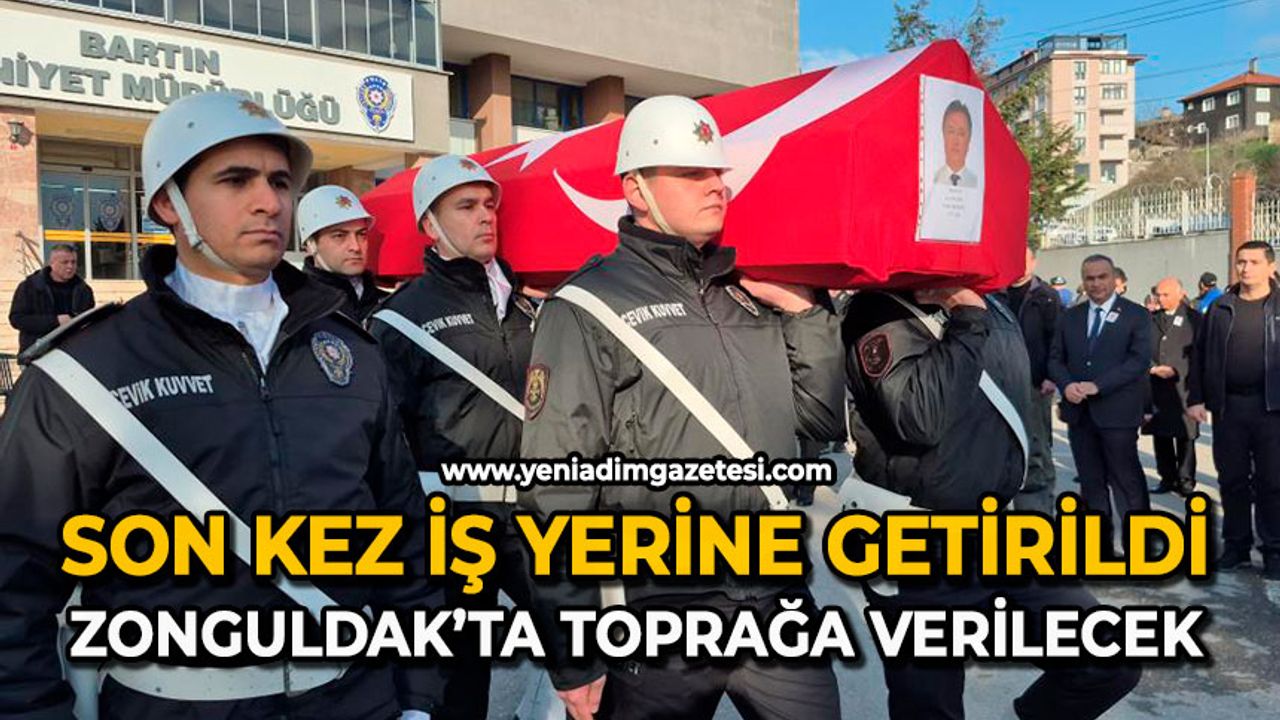 Bartın-Zonguldak kara yolu Akmanlar mevkiinde geçirdiği trafik kazası sonucu hayatını kaybeden 32 yıllık polis memuru Kazım Kızıl için Bartın Emniyet Müdürlüğü'nde cenaze töreni düzenlendi. Cenaze aracı ile İl Emniyet Müdürlüğü binasının önüne getirilen 52 yaşındaki Kızıl'ın Türk bayrağına sarılı tabutu silah arkadaşlarının omzunda musalla taşına konuldu.
