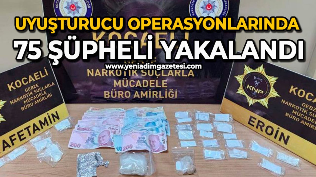 Kocaeli İl Emniyet Müdürlüğü Narkotik Suçlarla Mücadele Şube Müdürlüğü ekipleri, 4-24 Kasım tarihleri arasında il genelinde uyuşturucu satıcılarına yönelik geniş kapsamlı operasyonlar gerçekleştirdi. Yapılan çalışmalar sonucunda toplam 75 şüpheli gözaltına alındı. Operasyonlarda 2 kilo 602 gram esrar, 1 kilo 953 gram sentetik kannabinoid, 80 gram metamfetamin, 59 gram skank, 26 gram eroin, 23 gram kokain, 321 adet sentetik ecza, 213 adet captagon, 45 kök kenevir bitkisi, 9 adet hassas terazi, 2 tabanca, 11 fişek ve 123 bin 765 TL ele geçirildi. Yakalanan şüphelilerden 29’u hakkında TCK 191 kapsamında işlem yapılarak serbest bırakıldı. Uyuşturucu madde ticareti yaptığı değerlendirilen 46 şüpheli ise adliyeye sevk edildi. Bu kişilerden 8’i adli kontrol şartıyla serbest bırakılırken, 38’i çıkarıldıkları mahkemece tutuklandı.