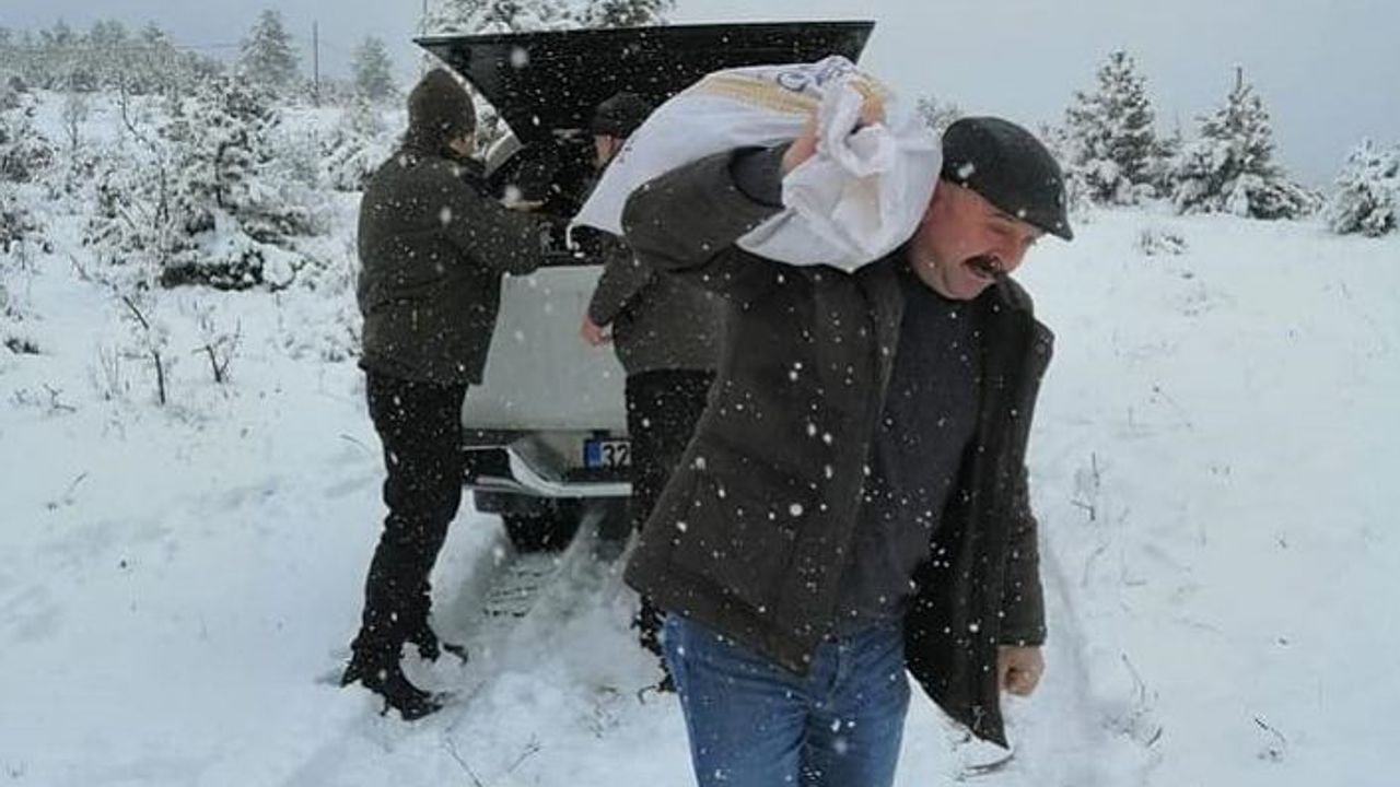 Karabük'te yoğun kar yağışı nedeniyle yaban hayatındaki hayvanların aç kalmaması için yemleme çalışması yapıldı.