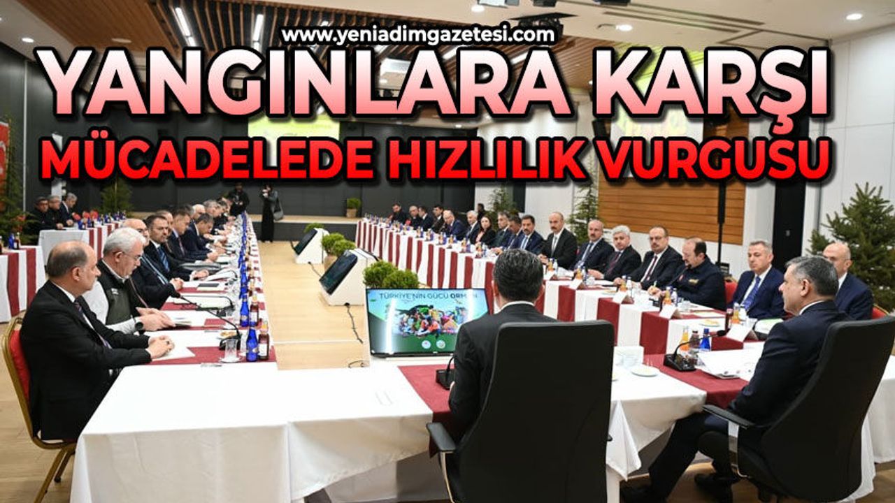 Zonguldak Valisi Osman Hacıbektaşoğlu,“Hazırlık ve Koordinasyon Toplantısı”nda yer aldı.İçişleri Bakanı Mustafa Çiftçi, Tarım ve Orman Bakanı İbrahim Yumaklı'nın katılımıyla yapılan toplantıda 2026 yılına yönelik tedbirler masaya yatırıldı.Hava ve kara unsurlarındaki kapasite artışları ile akıllı yangın yönetim sistemleri ele alındı.Toplantıda yangınlara karşı hızlı, etkin ve koordineli müdahaleye vurgu yapıldı.