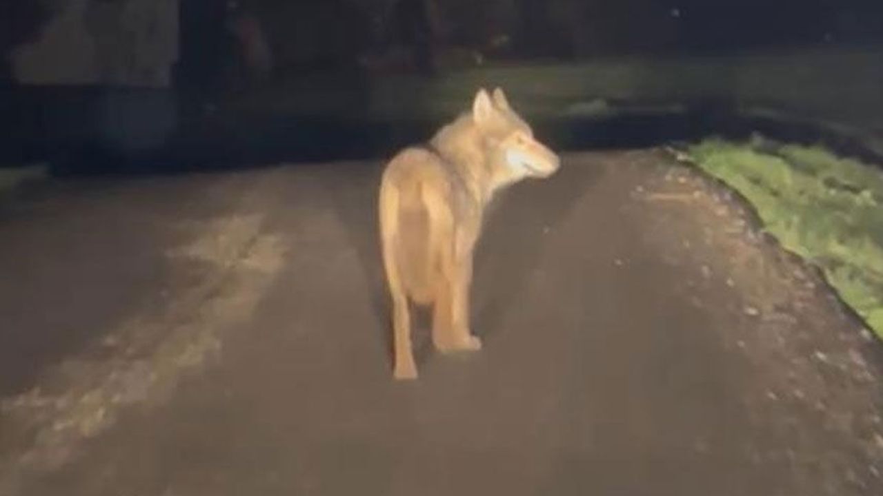 Vatandaş o anları cep telefonu kamerasıyla görüntüledi. Görüntülerde bir süre yol boyunca ilerleyen kurt daha sonra gözden kayboldu.