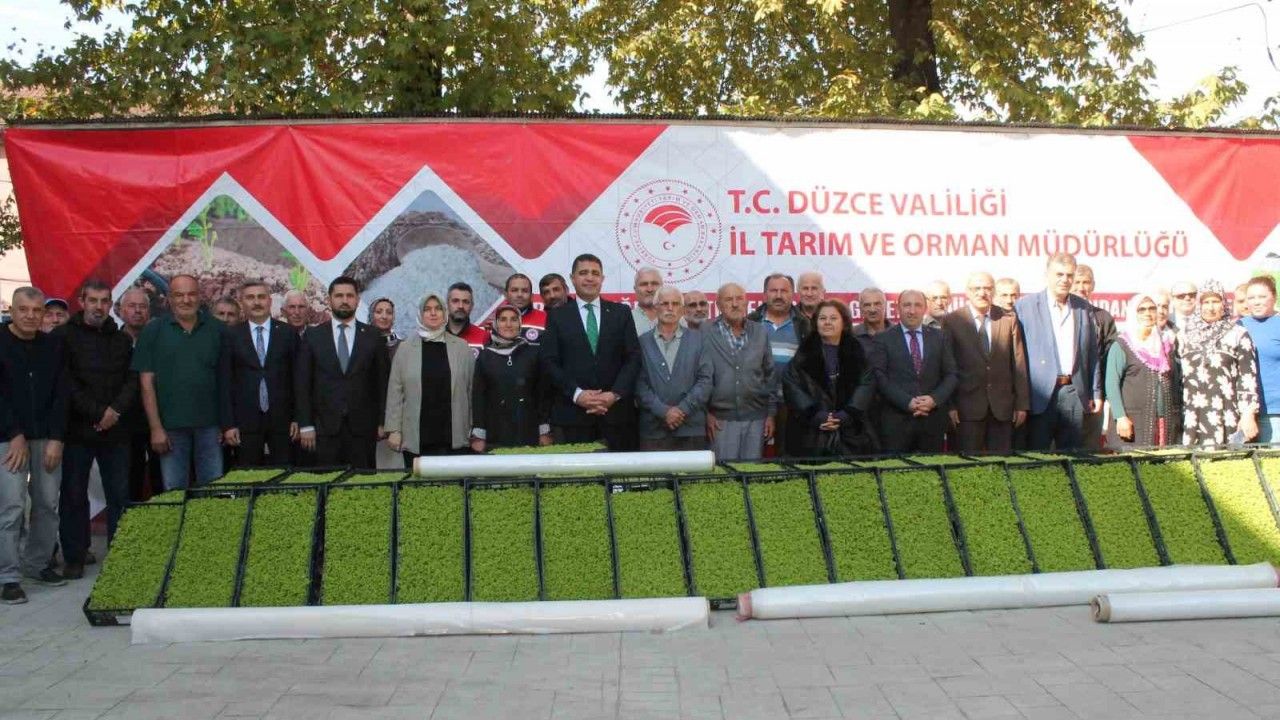 Düzce İl Tarım ve Orman Müdürlüğü bahçesinde, Tarım ve Orman Bakanlığı Bitkisel Üretim Genel Müdürlüğü tarafından yürütülen 2025 yılı Tarım Arazilerinin Kullanımının Etkinleştirilmesi (TAKE) Projeleri kapsamında marul fidesi ve Alternatif Üretim Yöntemlerinin Geliştirilmesi Projesi kapsamında sera naylonu dağıtım töreni gerçekleştirildi.