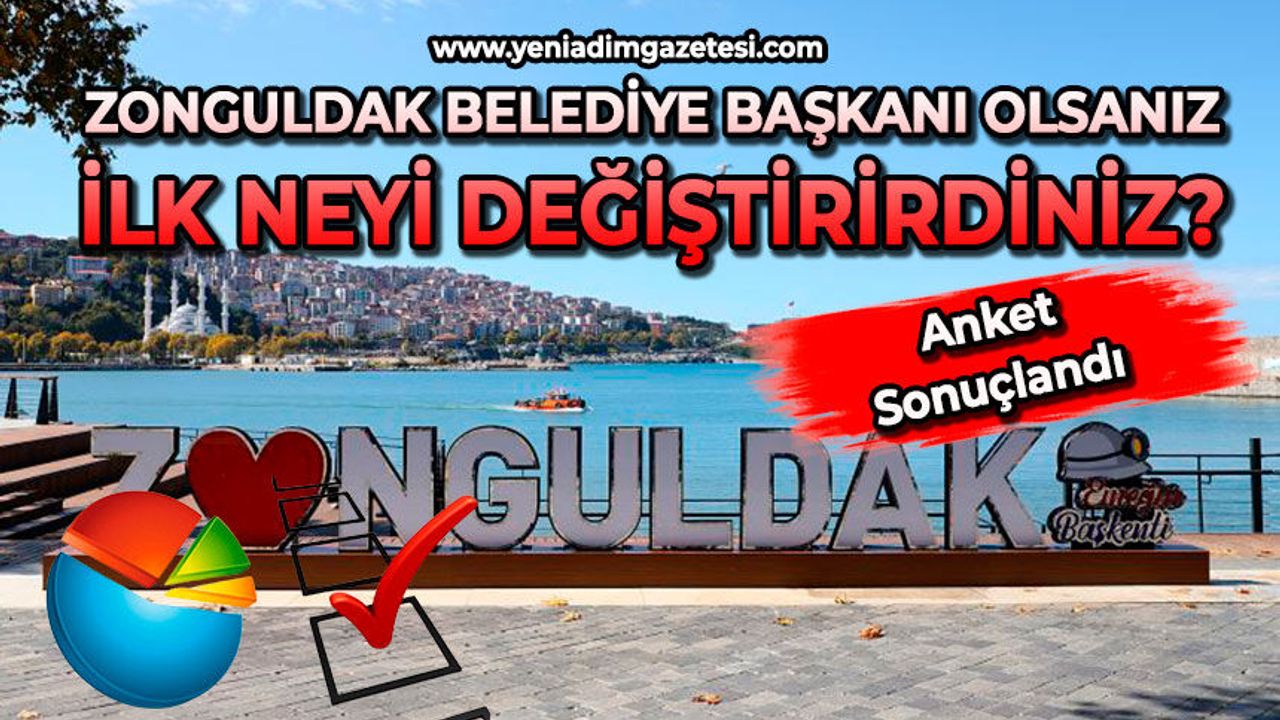 Yeni Adım İnternet Sitesi’nde her hafta yer alan anketlerde geçtiğimiz hafta alan ‘‘Zonguldak Belediye Başkanı olsanız ilk neyi değiştirirdiniz?’ sorusunu sorduk. Bu hafta boyunca okuyucuların yoğun ilgi gösterdiği anket sonucu belli oldu.