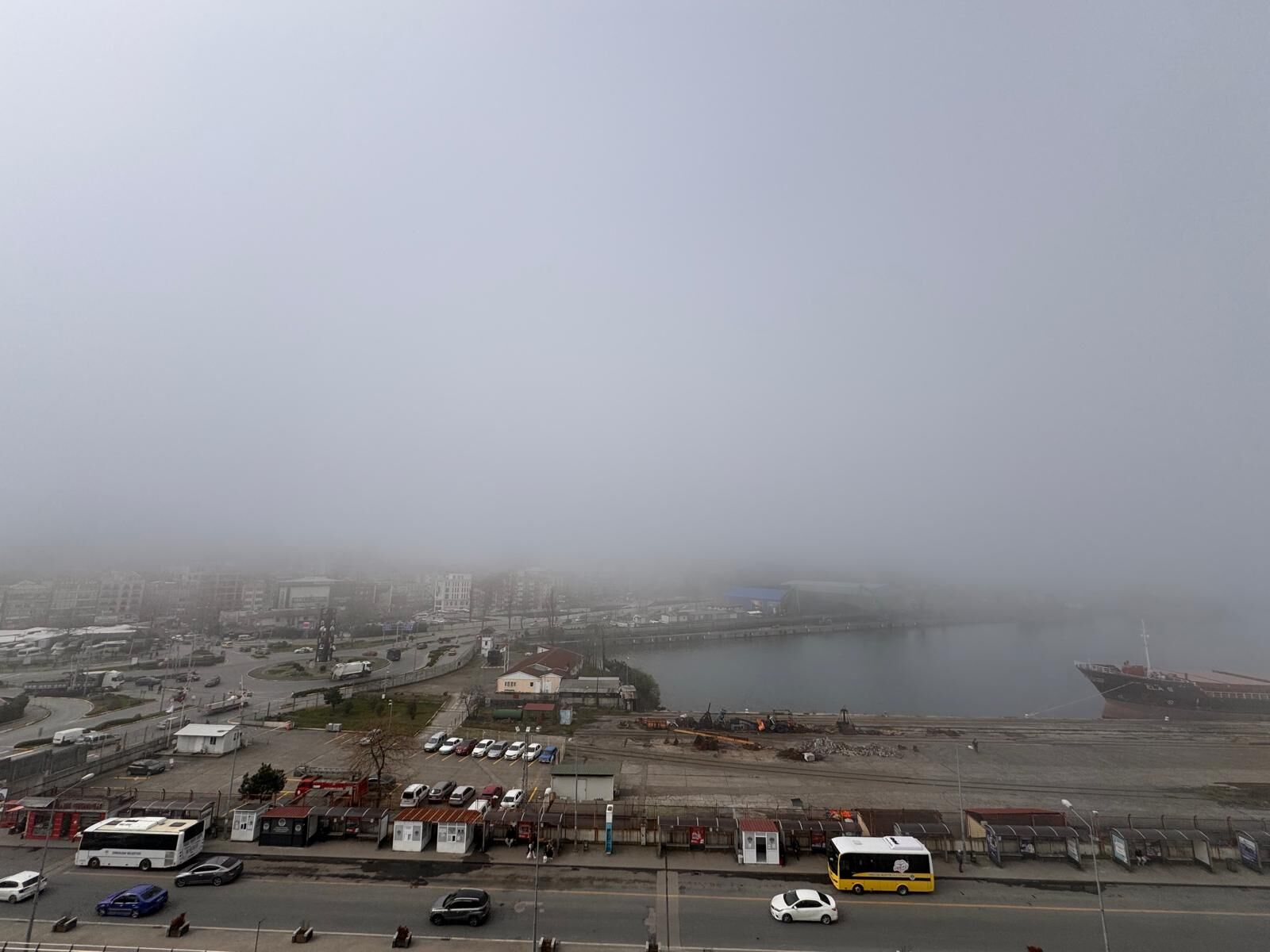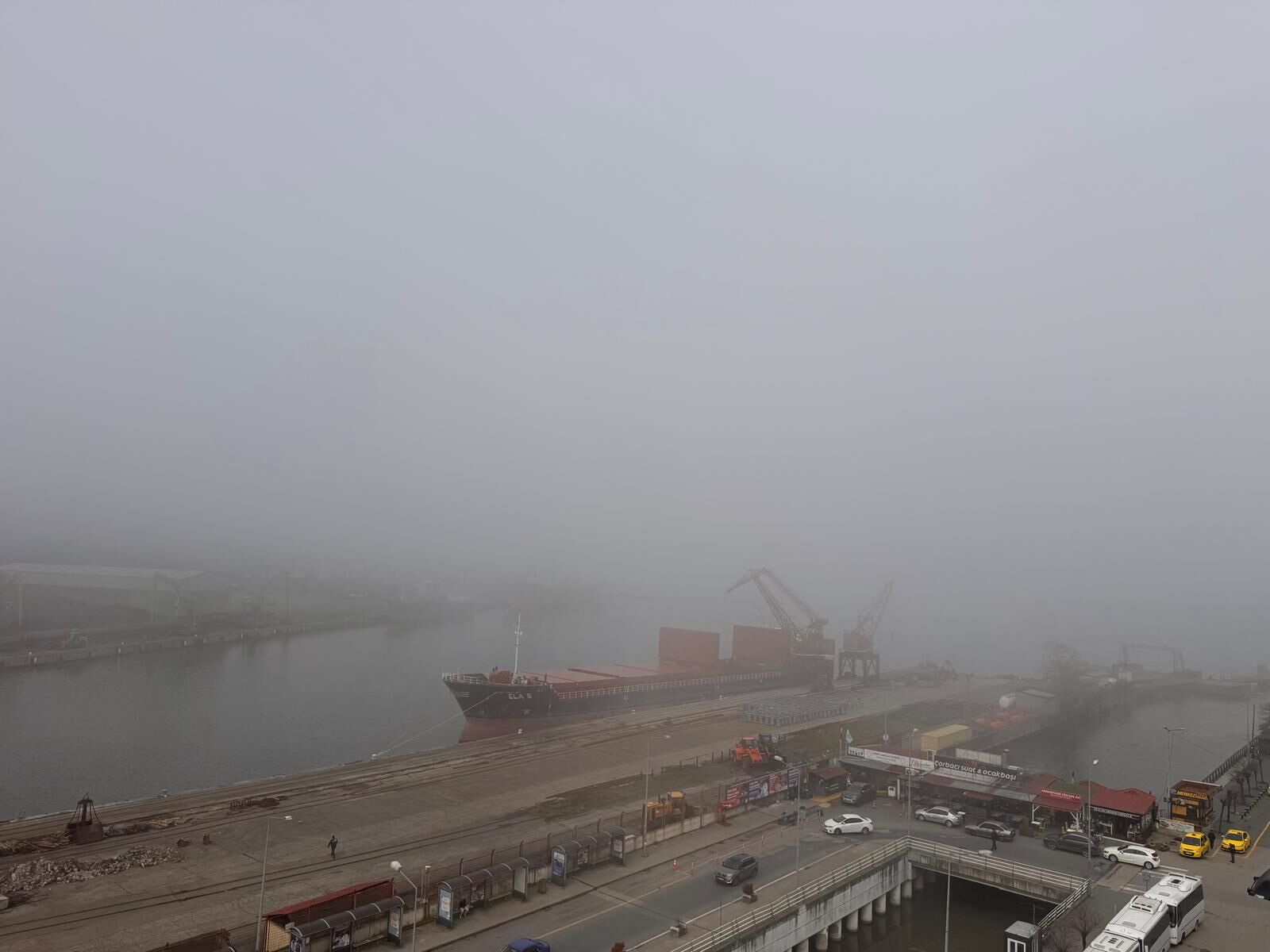 Özellikle liman bölgesi ve yüksek kesimlerde etkili olan sis nedeniyle görüş mesafesi yer yer birkaç metreye kadar geriledi. Paylaşılan görüntülerde, dev yük gemilerinin ve limandaki vinçlerin yoğun sis bulutu arasında adeta kaybolduğu, binaların ise sadece silüetlerinin seçilebildiği görüldü. Trafikte seyreden sürücüler, kısıtlı görüş mesafesi nedeniyle düşük hızda ve sis lambalarını yakarak ilerlemek zorunda kaldı.