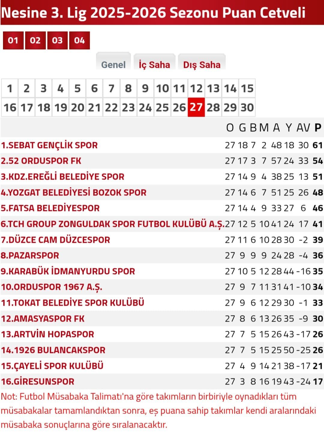 Nesine Üçüncü Ligde 27. Hafta müsabakaları Cumartesi- Pazar günü oynanan maçlarla tamamlandı.