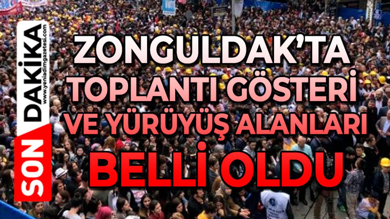 Zonguldak'ta 2026 yılında toplantı, gösteri ve yürüyüş alanları belli oldu. Valilik tarafından yapılan açıklamada: "İlimizde 2026 yılı içerisinde yapılacak Açık Hava Toplantısı ve Gösteri Yürüyüşleri ile afiş, pankart ve ilan asılacak yerler ile ilgili olarak 2911 Sayılı Toplantı ve Gösteri Yürüyüşleri Kanunu'nun Uygulanmasına Dair Yönetmeliğin 3’üncü Maddesi ve 2911 Toplantı ve Gösteri Yürüyüşleri Kanunu’nun “Toplantı ve gösteri yürüyüşü yer ve güzergahı” başlıklı 6. Maddesinde; Toplantı ve gösteri yürüyüşleri, tüm il ve ilçe sınırları içerisinde aşağıdaki hükümlere uyulmak şartıyla her yerde yapılabilir denilmektedir.