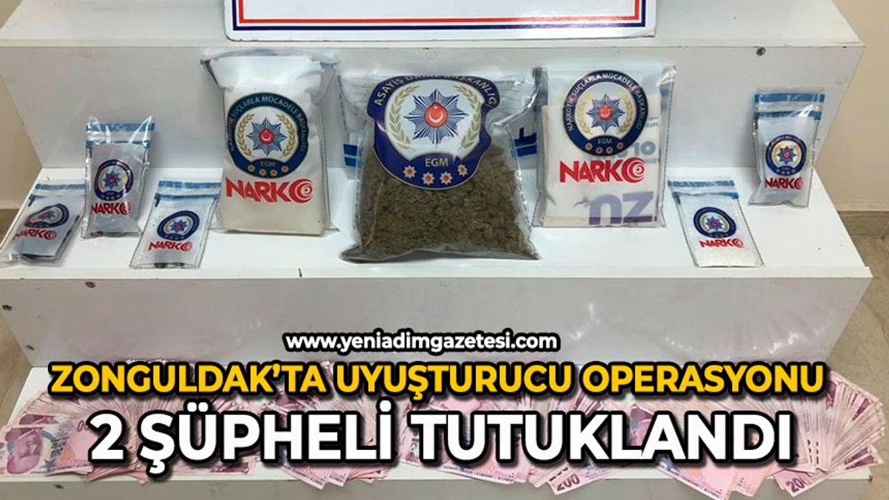 Zonguldak Emniyet Müdürlüğü ekipleri, il merkezinde uyuşturucu ticaretine yönelik operasyon düzenledi. Operasyonda B.K., F.K. ve Ö.A. isimli 3 şüpheli yakalanırken, yapılan aramalarda 570 gram skunk, 1,61 gram esrar, 11,9 gram kokain ve 160 bin 600 TL para ele geçirildi. Gözaltına alınan şüphelilerden B.K. serbest bırakılırken, F.K. ve Ö.A. çıkarıldıkları adli makamlarca tutuklanarak cezaevine gönderildi.